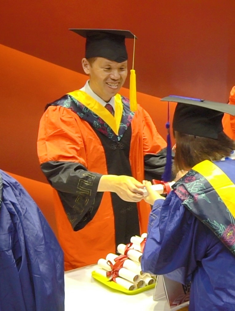 毕业生们迈着昂扬的步伐,依次上台领取毕业卷轴,走过台阶,也走过了在华理求学奋斗的时光。面对校院领导的拨穗与亲切慰问,毕业生们再次感受到送别的温情。