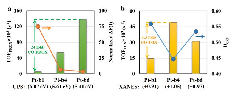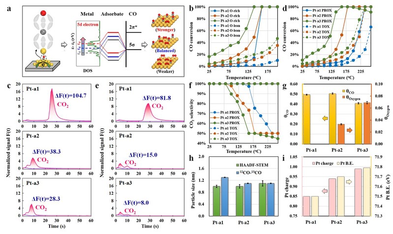 空气气氛中CO的完全氧化(CO-TOX)以及富氢气氛中CO的选择性氧化(CO-PROX)是脱除CO、延长催化剂寿命的最有效方式,其在许多重要工业应用场景如汽车尾气净化、氢燃料电池、大气污染物控制以及气体传感器等领域扮演重要角色,同时也用作探针反应来解析催化剂构–效关系与活性位结构。
