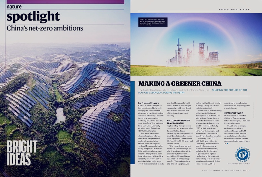 近日,Nature杂志“自然聚焦——中国碳中和愿景”刊发对我校涂善东教授的访谈。文章以“Making AGreener China”为题,涂善东教授阐述了碳中和愿景下可靠性制造的理念。