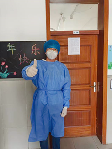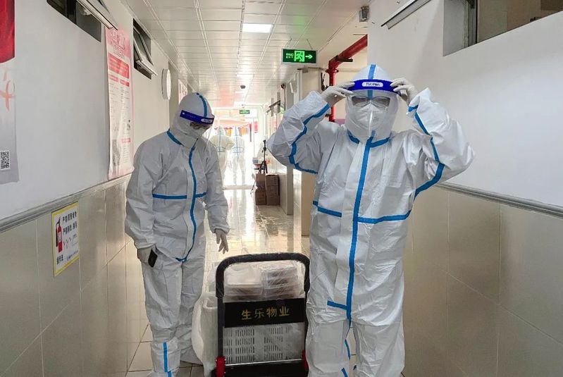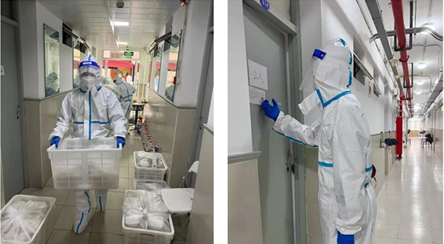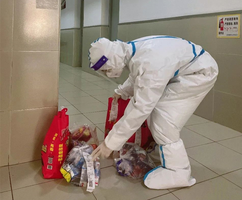 艺术学院宋湉源:每一天从早上七点开始,我就穿上防护衣化身“小蓝”,发放三餐、引导核酸检测。从一开始手忙脚乱到现在流程逐渐熟稔于心,我与大家的配合也变得越来越默契。我认为,层长这份职责带给我的温暖更甚。虽然身在宿舍,学院老师时刻通过线上关注守护着同学们。同学一旦有需求,便不辞辛劳地奔波,送来急需的生活用品、寻找药品、布置考研复试的环境,如同父母为大家操劳。同学们积极配合,每间宿舍门口标记用餐人数的纸条上,一张张都写着“谢谢”“辛苦了”……让“小蓝”们感动。