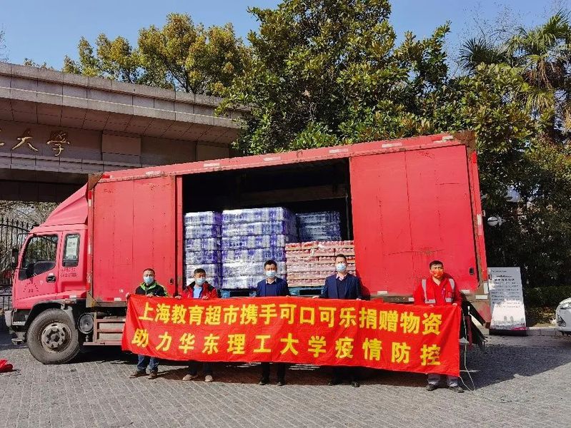在化工学院1997级校友刘汉伟的协调下,上海教育超市携手供应链企业,助力华理防疫工作,捐赠了一批价值10万余元的物资,包括150余盒坚果、近400盒核桃、60箱可乐、1100余箱矿泉水、600盒口罩。