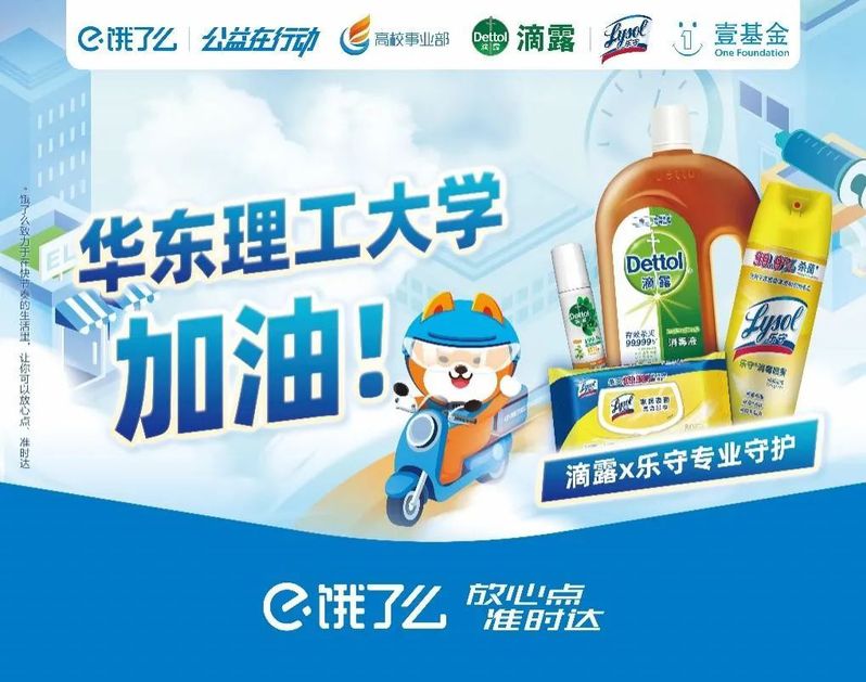 饿了么、壹基金等爱心组织积极联动滴露、乐守等爱心企业,在市教委后保处和市学校后勤协会的指导下,精准对接高校防疫需求,向华理捐赠了1500余箱消毒液、洗手液等防疫物资,价值30余万元,助力坚实守护高校师生健康安全,打赢疫情防控阻击战。