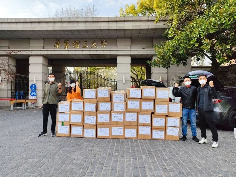 4月10日,一批由山东济宁商会组织、中建八局总承包公司捐赠的抗疫物资运抵华理。这批物资包括卷心菜10000斤、芹菜10000斤、土豆10000斤、洋葱10000斤、蒜苔6000斤、西红柿5000斤、黄瓜5000斤、菠菜1000斤、香菜1000斤以及大蒜头1000斤。