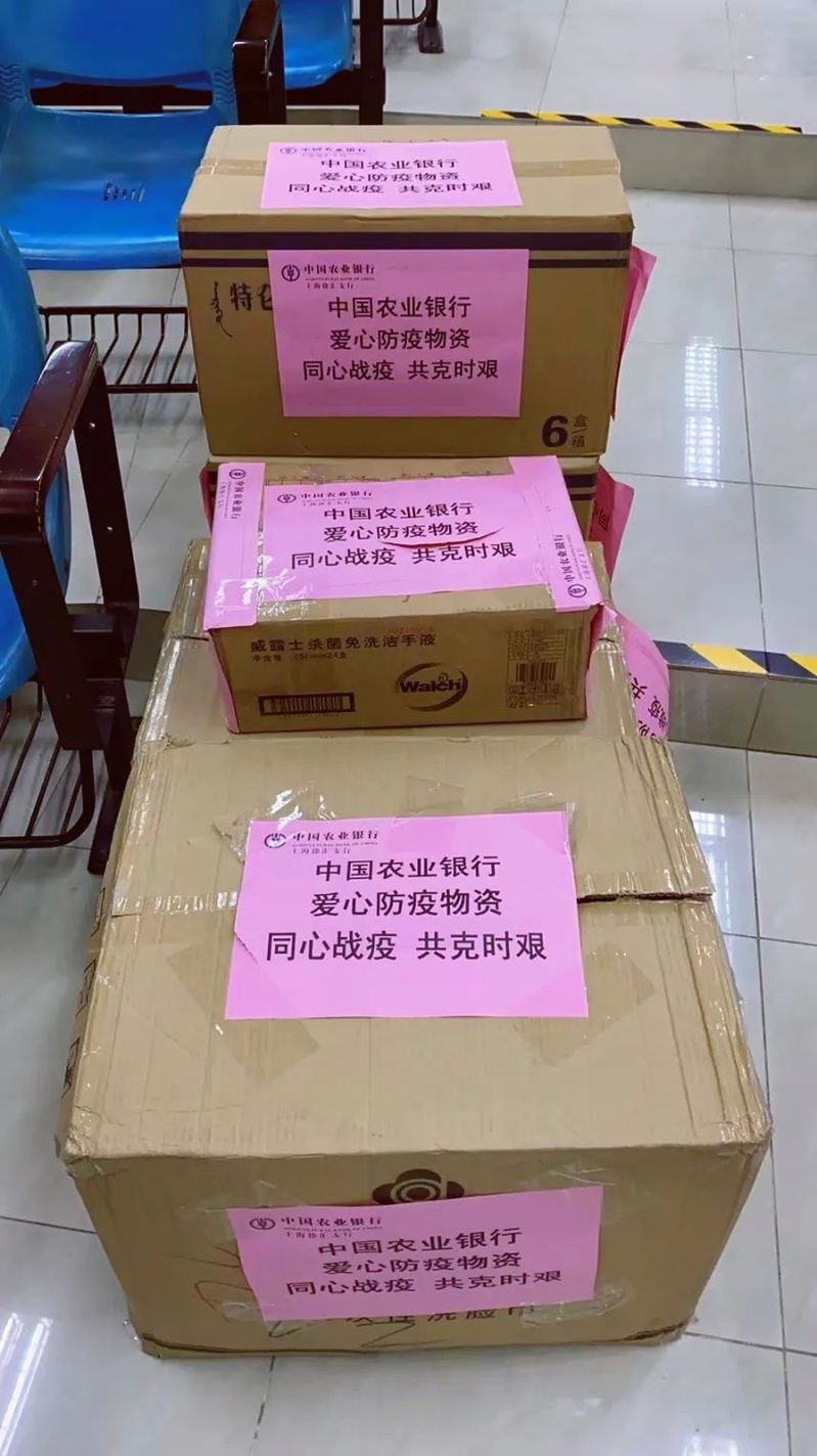 中国农业银行徐汇支行向志愿者们捐赠牛奶100余盒、免洗酒精洗手液20余瓶、一次性洗脸巾60包、酒精湿巾50盒等。