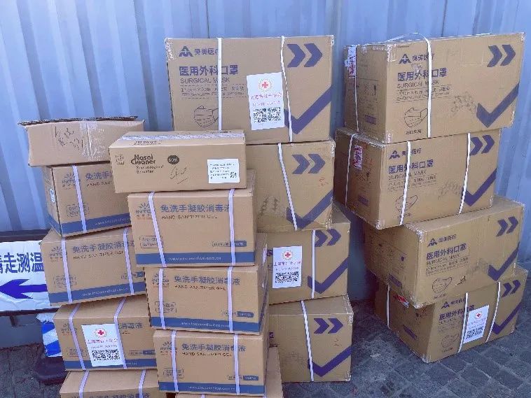 上海市红十字协会捐赠20000个医用外科口罩、4000个鼻腔清洗液、800瓶免洗手凝胶消毒液、10吨莴笋。