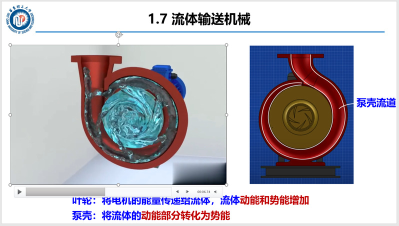 线上教学中,为了让学生更好地掌握相关知识点,赵方会通过增加各种素材来丰富教学内容。例如,在讲授离心泵时,由于离心泵是学生学习的第一个单元操作设备,学生对化工机械还没有太多认知,她就在教学中插入一个视频,通过视频动画,让学生能够更好地掌握离心泵的工作原理。