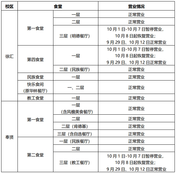 2. 其余教学楼自习教室:10月1日-10月6日关闭,10月7日起恢复正常;