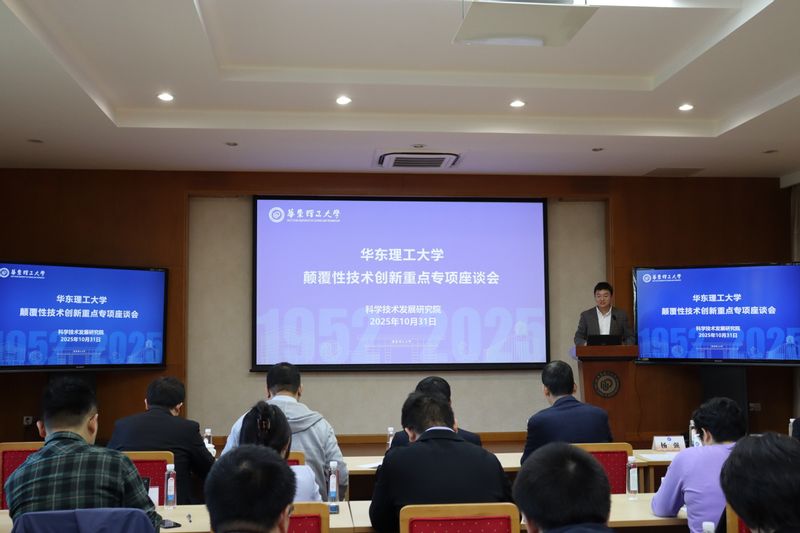 为深入贯彻党的二十大及党的二十届四中全会精神,扎实推进有组织科研落地见效,10月31日上午,学校组织召开颠覆性技术创新重点专项座谈会。副校长李春忠出席会议并致辞。会议特邀京津冀国家技术创新中心能源低碳创新中心主任刘锐平、上海颠覆性技术创新中心主任金安、材料与生物项目组组长李飞等专家到会指导。各学院科研骨干代表40余人参会,科学技术发展研究院院长杨强主持会议。