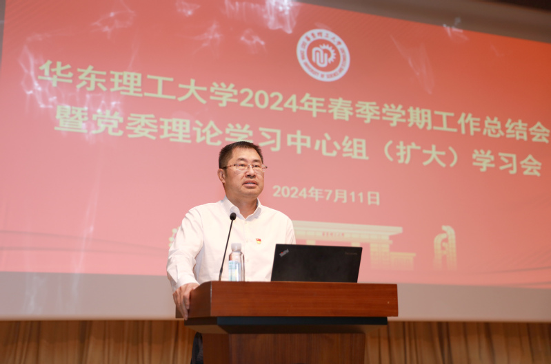 蒋传海从“坚持和加强党的全面领导,全力开好学校第十二次党代会”“坚持推进党的自我革命,推动全面从严治党向纵深发展”“坚持推进‘一融双高’,促进党的建设与事业发展深度融合”“坚持统筹发展与安全,支撑保障学校事业高质量发展”等四个方面,总结了学校党委上半年的重点工作,并就暑期重点工作进行了部署。他强调,暑期期间全校上下要持续加强理论武装,认真学习宣传贯彻党的二十届三中全会精神,持续推进党纪学习教育,以实际行动坚决拥护“两个确立”、坚决做到“两个维护”。要认真谋划思考,立足实际,召开校院两级工作务虚会,谋划秋季学期工作,做好顶层设计,抓好贯彻落实,扎实做好教育、教学、科研、实践等各项工作。要加强对外开放,坚持“引进来”和“走出去”相结合,组织开展好各类学生交流活动,持续推进“三会”建设,凝聚各方力量,争取更多资源,支持学校事业高质量发展。要加强安全风险防范,强化风险意识、底线思维,主动落实安全主体责任,加强校园安全管理,全力保障师生生命财产安全和校园平安有序运行。