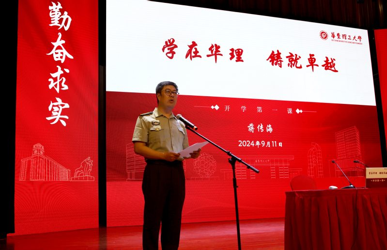 “一代又一代华理人心系祖国和人民,勇攀科研高峰,为经济发展和社会进步贡献智慧和力量。”蒋传海讲述了首任校长张江树、抗生素专家马誉瀓、化工学科奠基人苏元复、感光专家朱正华等老一辈华理人的科技报国故事,希望同学们向先辈学习,传承“勤奋求实、艰苦奋斗、顽强拼搏、开拓创新”的华理精神,把学习和科研融入到建设国家的远大理想和实践中去,续写华理荣光。